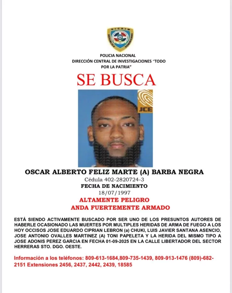 Feliz Marte era buscado bajo la orden judicial de arresto No. 2025-AJ0058499. El detenido se encuentra bajo control del Ministerio Público para los fines legales correspondientes.