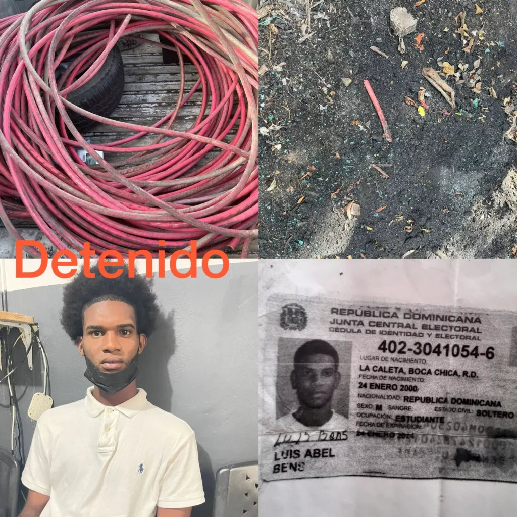 Santo Domingo.- La Policía Nacional informó que se entregó ayer uno de los presuntos responsables de sustraer cables eléctricos y otros artefactos de la pista de aterrizaje del Aeropuerto Internacional Las Américas, Dr. José Francisco Peña Gómez.