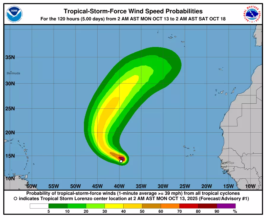El Centro Nacional de Huracanes de Estados Unidos (NHC, por sus siglas en inglés), pronostica poco cambio en la fuerza de la tormenta tropical Lorenzo, pero existe la probabilidad de alguna intensificación gradual durante la semana.