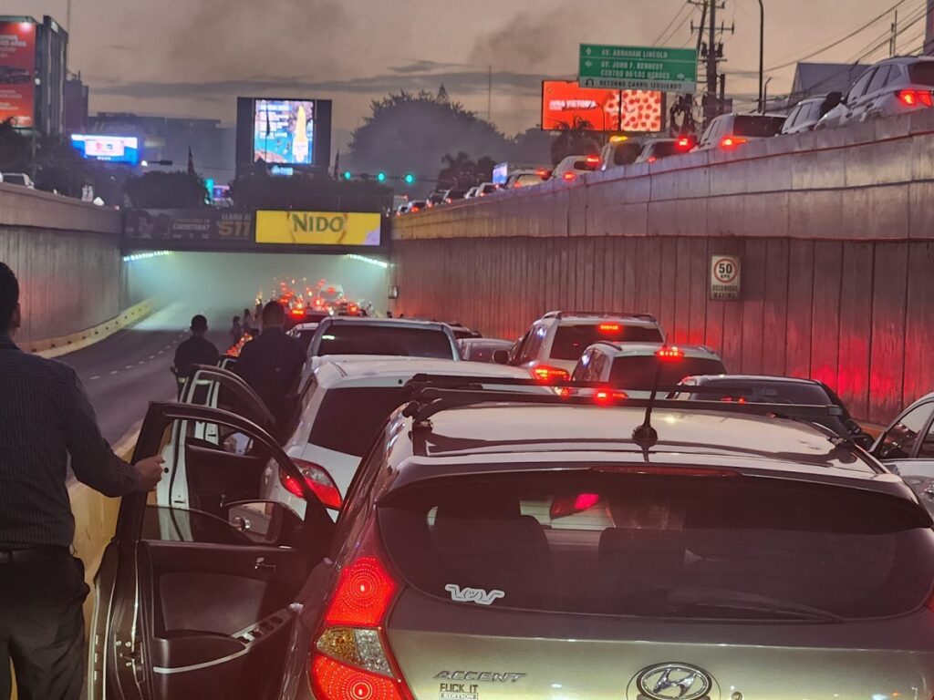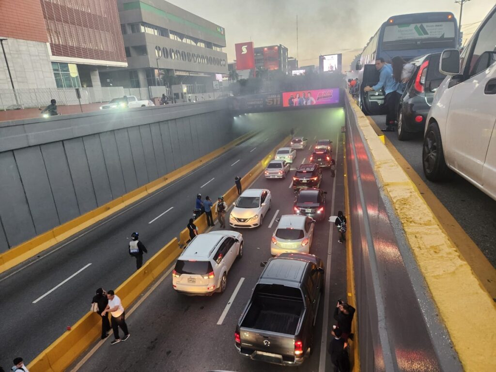 Santo Domingo.- Un vehículo se incendió este martes en el túnel de la avenida 27 de Febrero, en dirección oeste-este, lo que provocó la suspensión del tránsito en varias vías y un prolongado congestionamiento.