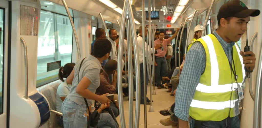 En la entrada de la estación María Montez de la segunda línea del Metro de Santo Domingo, ubicada en la avenida Luperón y el kilómetro Nueve de la autopista Duarte, cuatro agentes del Cesmet revisaban las pertenencias de las personas que entraban al mismo.