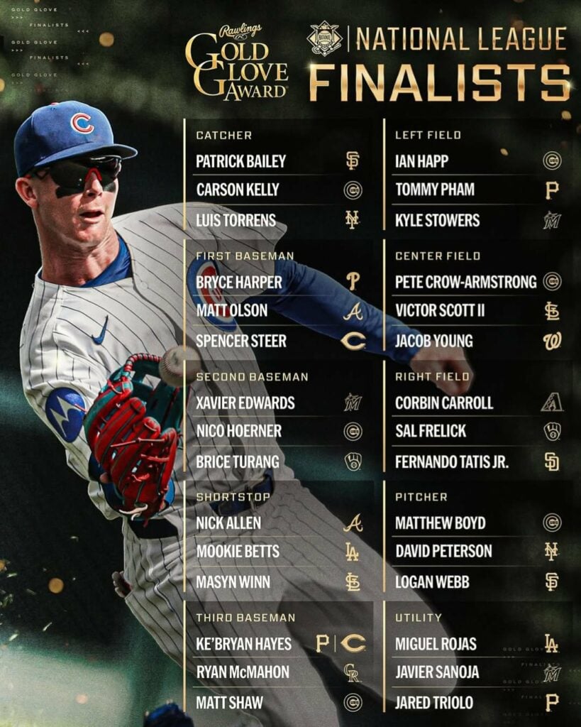 El premio Guante de Oro, otorgado por Rawlings, reconoce a los mejores jugadores defensivos en cada posición tanto en la Liga Americana como en la Nacional. Los ganadores serán anunciados en noviembre, luego de una votación que combina la opinión de los managers y coaches de MLB con métricas avanzadas de fildeo.