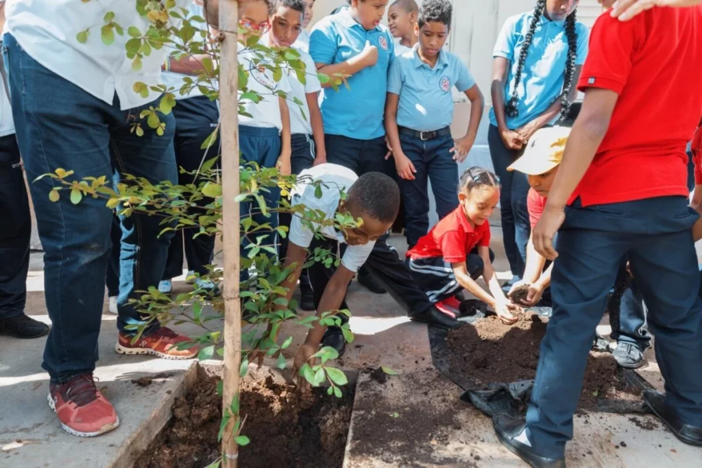 A propósito del mes nacional de la reforestación, durante la plantación de estos árboles participó un grupo de estudiantes de la Escuela Primaria Salomé Ureña y del Colegio Integrado Capotillo junto a colaboradores de la alcaldía.