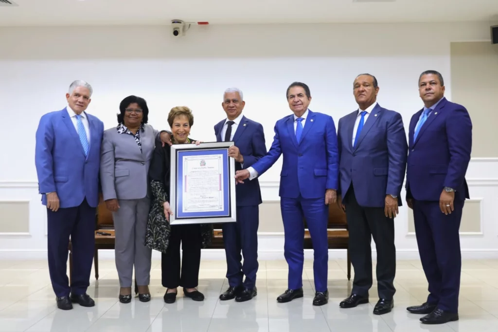 SANTO DOMINGO.- La educadora Jacqueline Malagón, con más de 65 años de trayectoria a favor de la formación y la educación en la sociedad dominicana, recibió este miércoles un pergamino de reconocimiento por parte del Senado de la República.