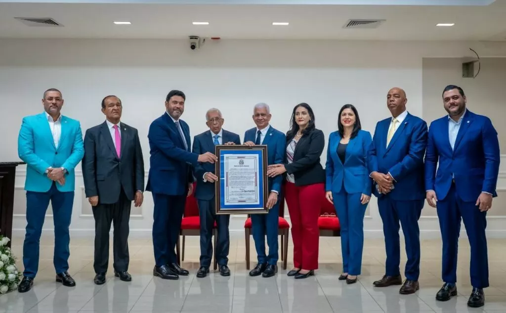 Luego de dar lectura al pergamino de reconocimiento, el presidente del Senado, Ricardo de los Santos, acompañado del proponente de la iniciativa, el senador Rafael Duluc Rijo y los senadores Lía Díaz de Díaz, Moisés Ayala, Antonio Marte, Eduard Espiritusanto, Odalis Rodríguez, María Mercedes Ortiz y Jonhson Encarnación, hicieron entrega del mismo al homenajeado.