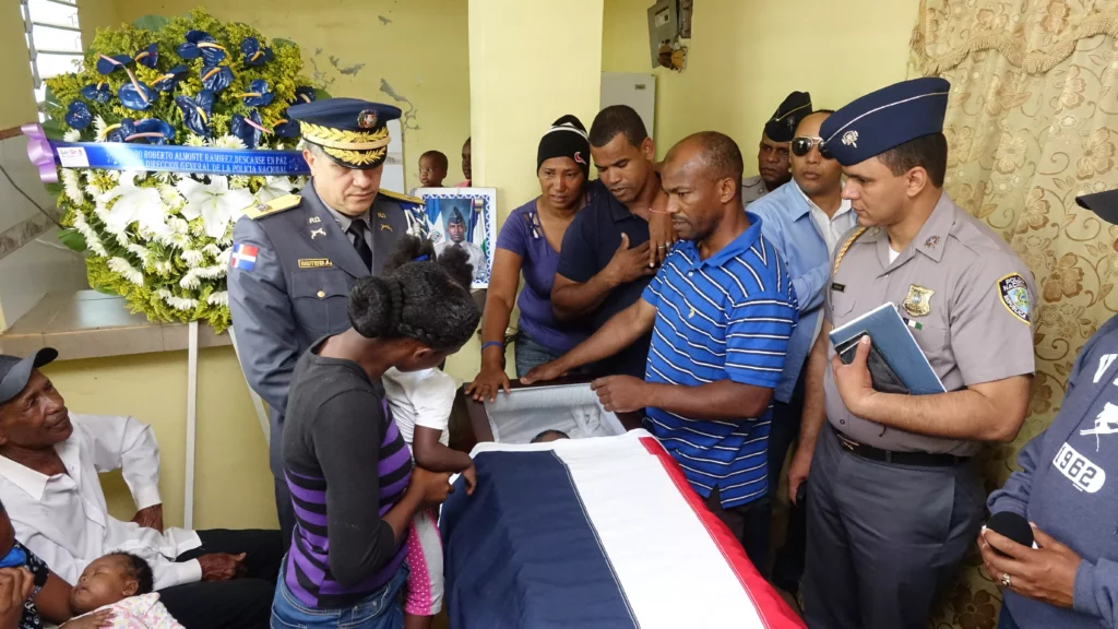 El director general de la Policía Nacional, mayor general Ney Aldrin Bautista Almonte, se trasladó al sector Quita Sueño de Haina, donde el alistado residía junto a su familia y donde fueron velados sus restos.
