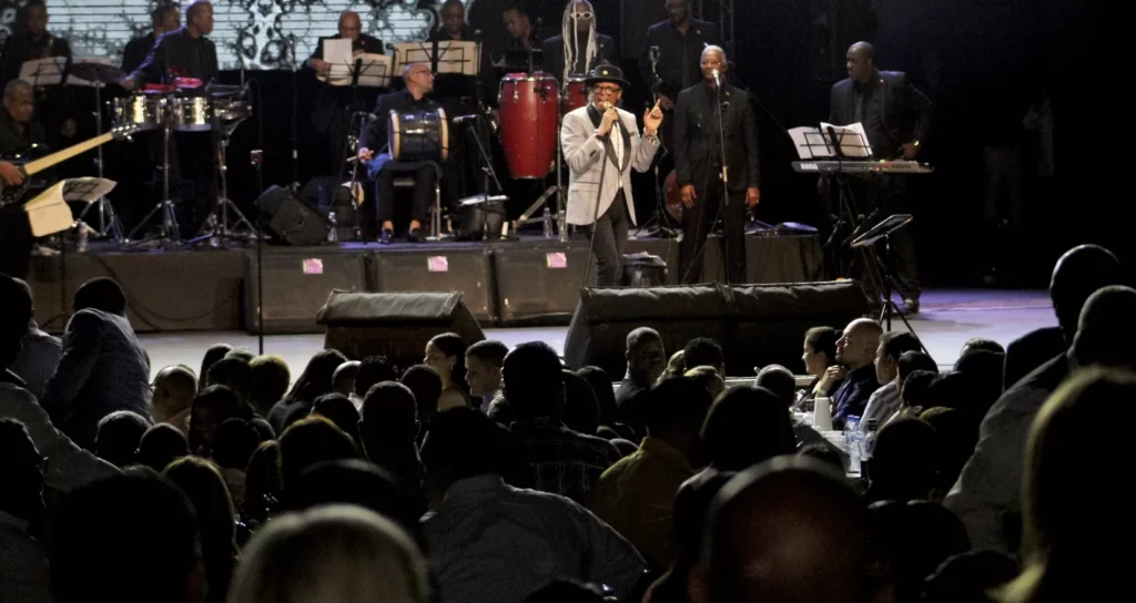 SANTO DOMINGO.-A las 11:08 de la noche, sonaron los primeros acordes musicales de la Filarmónica de Villa Altagracia, con el tema “Si algún día la ves”, bajo la dirección de su líder, Sergio Vargas, dando inició a la celebración de sus 35 años de carrera musical que concluiría 2 horas y 40 minutos más tarde con la canción “La Pastilla”.