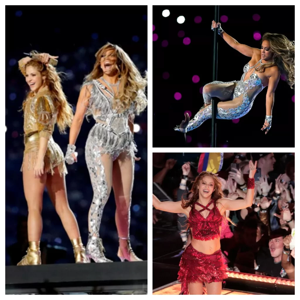 Bailaron y cantaron salsa, cumbia, merengue y reguetón. Las dos artistas latinas terminaron cantando juntas “Waka Waka”, la canción oficial del Mundial de Sudáfrica de 2010, enfundadas ambas en sexys bodies metálicos, melenas rizadas y al viento, y se despidieron con un sonoro “Gracias” y “Thank You”, en otra muestra de la cada vez mayor presencia de la comunidad latina en EE.UU.