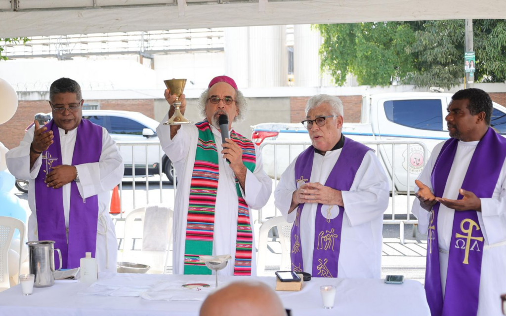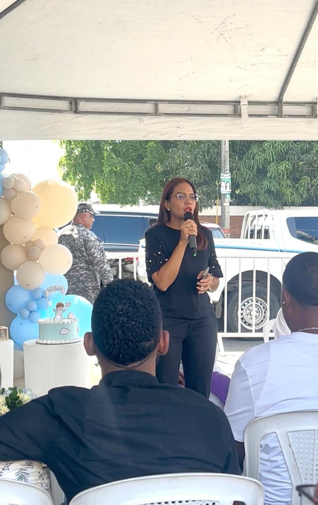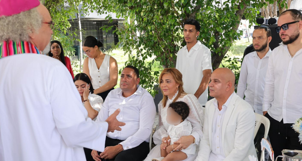 La ceremonia estuvo marcada por un momento profundamente simbólico: el bautizo de Tihago, hijo del ex pelotero de Grandes Ligas Tony Blanco y su esposa Nelffisis Calwany Sánchez Brea, quienes perdieron la vida en la tragedia.