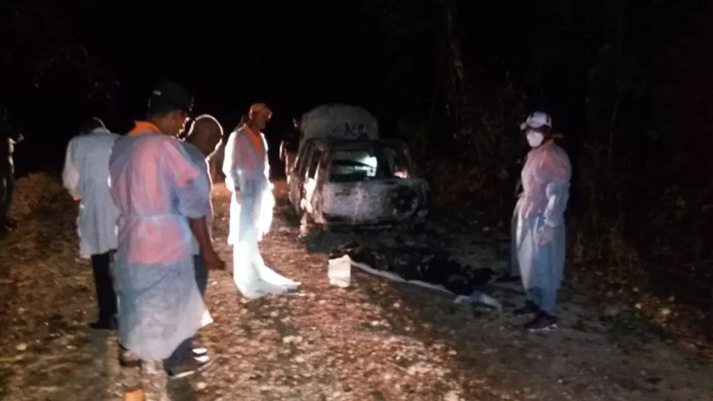 Dos de los cuerpos fueron encontrados calcinados dentro de una yipeta y el otro fue hallado a pocos metros con varias heridas de bala.