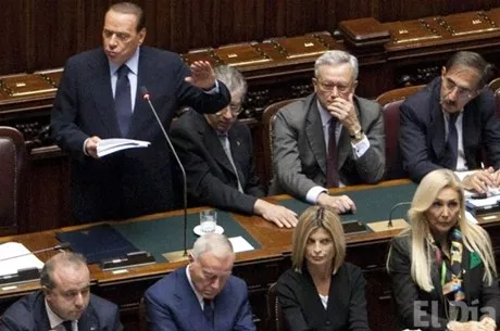 El gabinete de tres años y medio de Berlusconi encara hoy una moción de censura. Si la pierde, deberá dimitir de inmediato. Berlusconi defendió su gobierno en un discurso de 15 minutos, la víspera de la votación de confianza que decidirá si retiene la mayoría en el Parlamento.