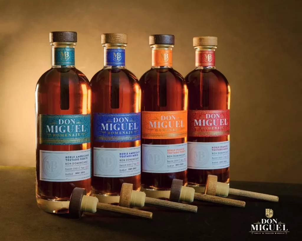 SANTO DOMINGO.–Ron Don Miguel Homenaje es un reconocimiento al mejor ronero dominicano de nuestra historia y pionero en la internacionalización masiva del ron Dominicano en el mundo, Miguel Barceló Pascual, tomando una de sus más preciadas fórmulas de uso familiar y complementada con la atrevida innovación de su hijo Julián y sus nietos Manuel, Rodrigo y Julián Jr., de colocar una pieza de roble dentro de cada botella, algo nunca hecho en nuestro país, logrando el primer envase activo en República Dominicana; presentando de esta manera un ron ¡Sin precedentes!