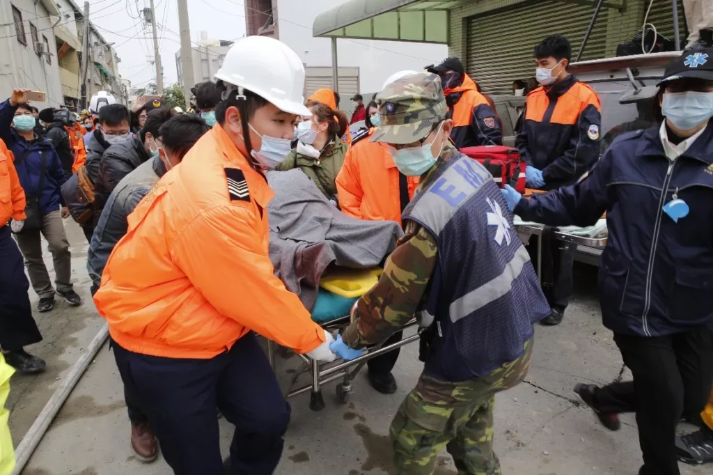Los equipos de rescate sacaron a 348 personas de entre los escombros en la ciudad de Tainan, la zona más afectada. Más de 2.000 bomberos y soldados equipados con escaleras, grúa y otros equipos revisaron los restos de un edificio de viviendas de 17 plantas que se plegó como un acordeón.