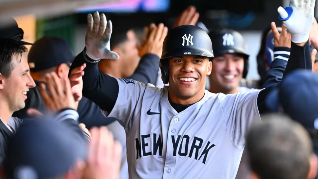 Juan Soto bateó un jonrón de tres carreras y Cody Poteet lanzó seis innings sólidos al debutar con los Yankees de Nueva York, que doblegaron el sábado 8-2 a los Guardianes de Cleveland para barrerlos en una doble cartelera.