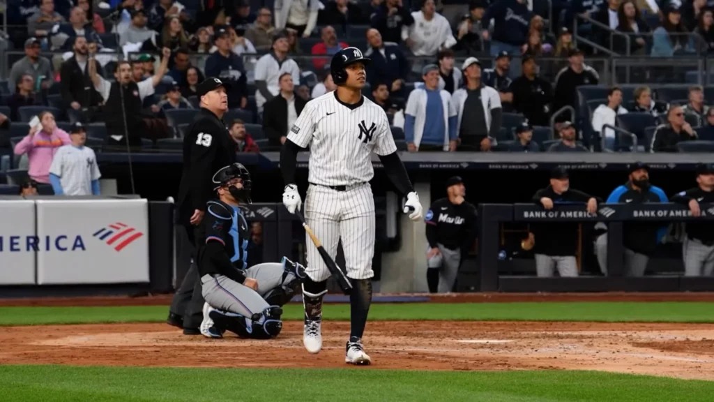 Y el lunes, Soto conectó su primer bambinazo en casa con el uniforme de los Yankees, al empalmar un cañonazo de tres carreras que ayudó a Nueva York a superar a los Marlins por 7-0.