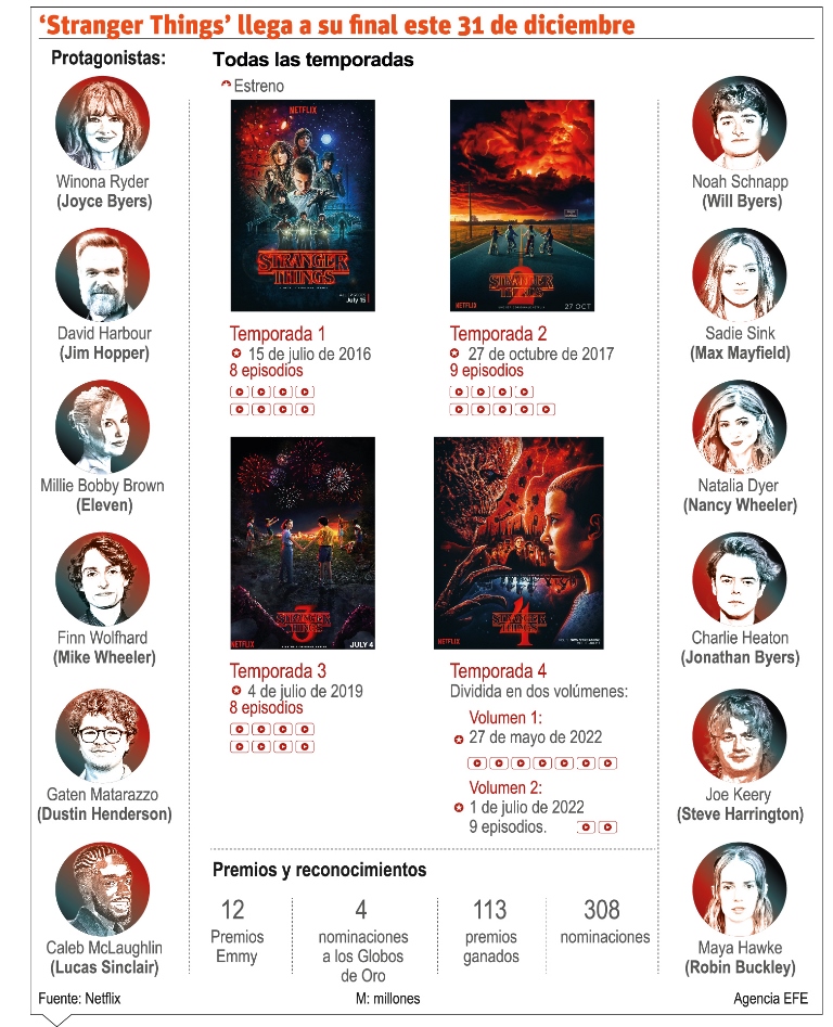 Los Ángeles.-Esta noche se estrena el esperado final de Stranger things. La serie concluye su historia en Hawkins, cerrando un ciclo de misterio, amistad y batallas en un capítulo de más de dos horas de duración.