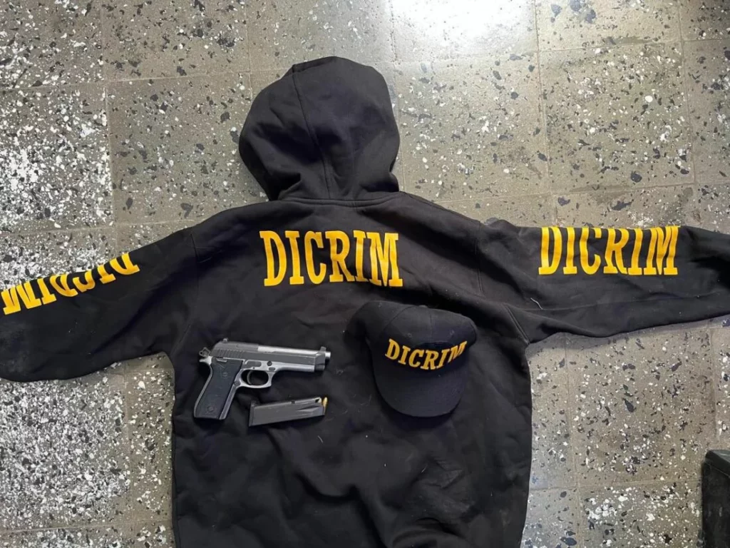 Asimismo, le fue ocupado un bulto azul contenido en su interior pertrechos policiales de la Dicrim.