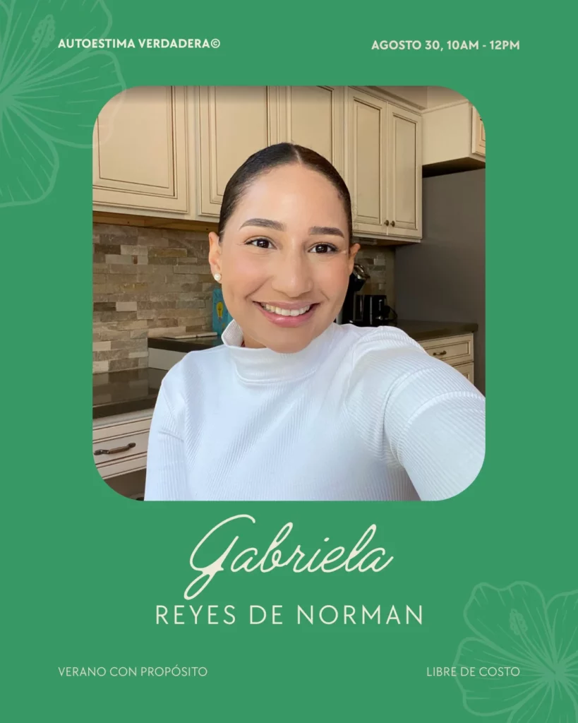 La facilitadora será Gabriela Reyes de Norman, autora de los devocionales ¿Abundancia en Cristo y "El Hábito de Orar Intencionalmente", reconocida por su enfoque en temas de identidad, oración y crecimiento espiritual.