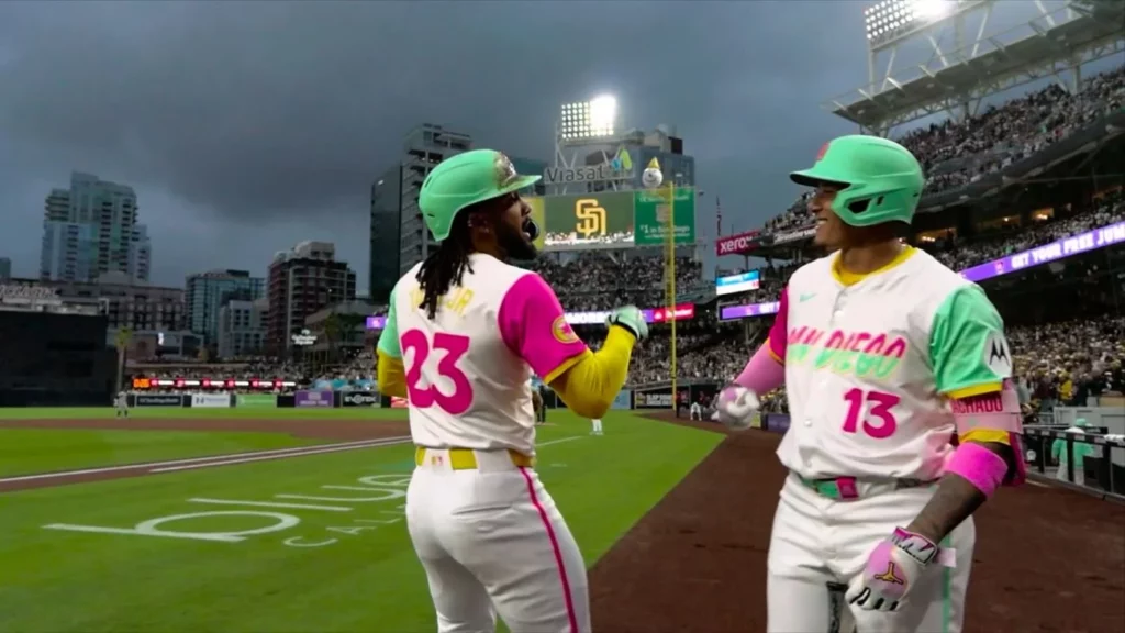 Cronenworth envió el segundo lanzamiento de Dylan Lee (0-1) hacia los asientos del jardín derecho. El dominicano Tatis, quien ha bateado de primero en los dos juegos iniciales de la campaña, conectó un jonrón entre el jardín izquierdo y el central en el primer lanzamiento de su compatriota Reynaldo López.