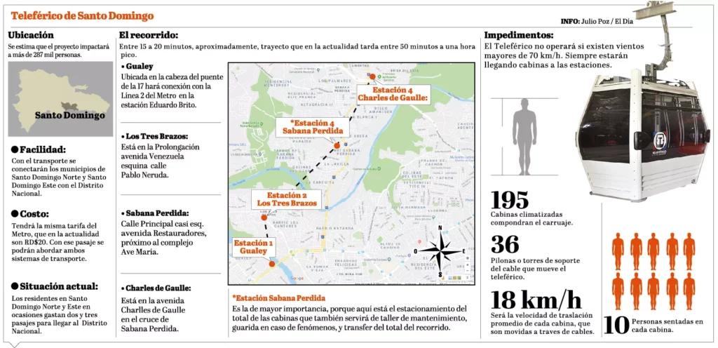 Con el teleférico los usuarios, con un solo pasaje, podrán llegar con facilidad al Distrito Nacional, ya que con la misma tarifa de RD$20 tendrán acceso a la línea 2 del Metro.