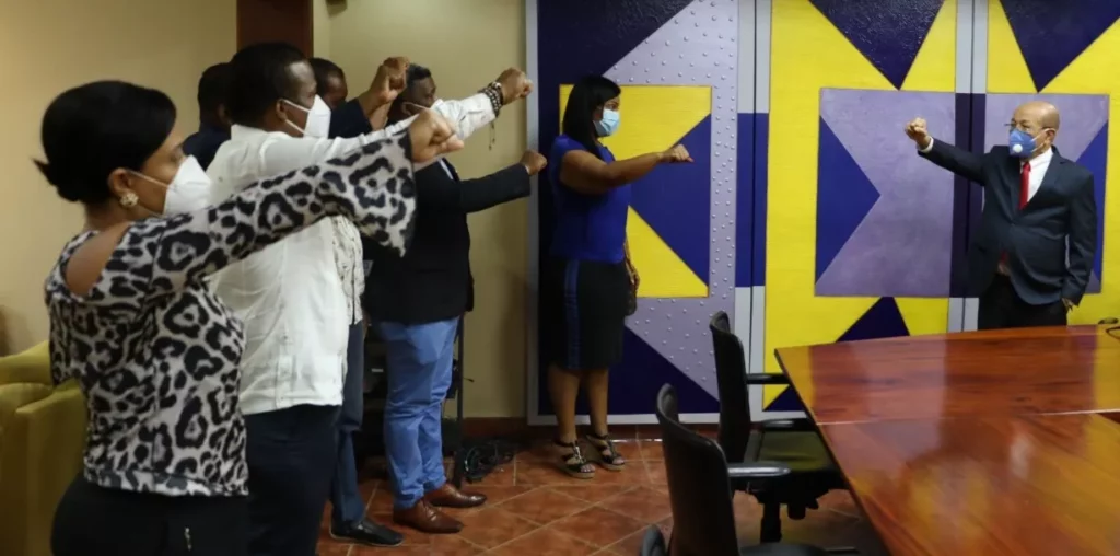 La actividad se realizó en el salón de comisiones de la Oficina del Comité Político, adoptándose el distanciamiento recomendado y las medidas sanitarias preventivas.