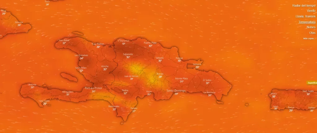 Santo Domingo.– Las temperaturas podrían alcanzar hoy valores hasta los 37 grados celsius en algunos puntos del país, según informó el predictor de la Oficina Nacional de Meteorología (Onamet), Francisco Holguín.