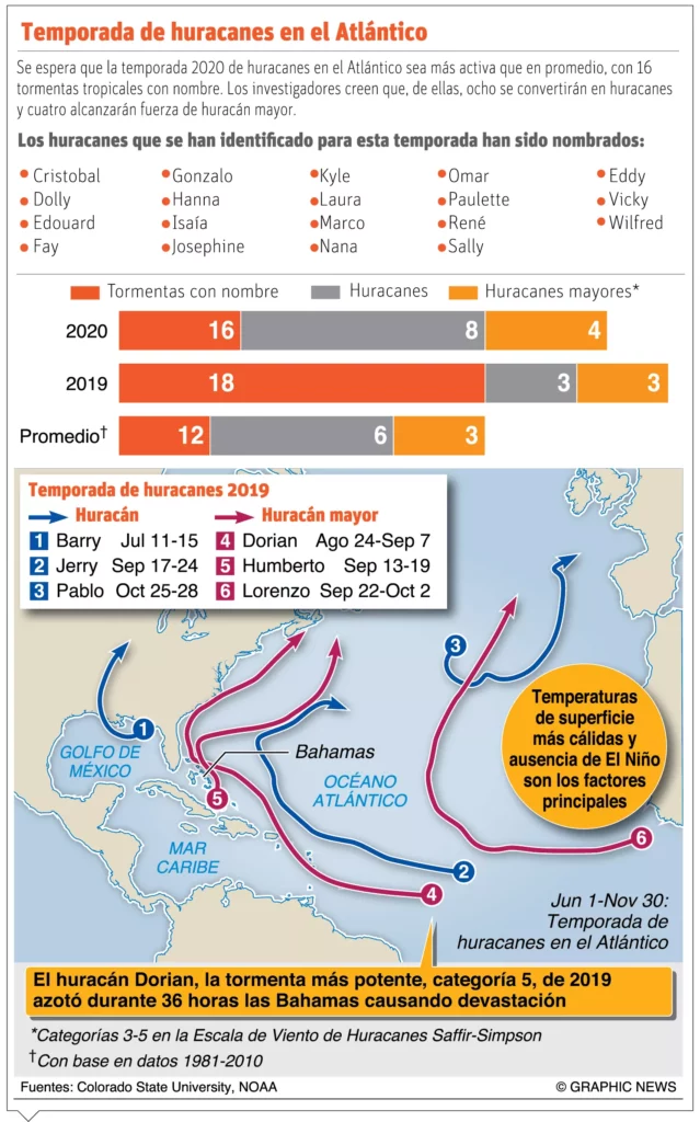SANTO DOMINGO.-La temporada ciclónica que recién inicia se proyecta como una de las más activas de los últimos años, donde ya se nombraron 19 huracanes para el Atlántico Norte, Golfo de México y el Caribe, que pudieran afectar a los países de la región, de acuerdo a las autoridades meteorológicas locales e internacionales.