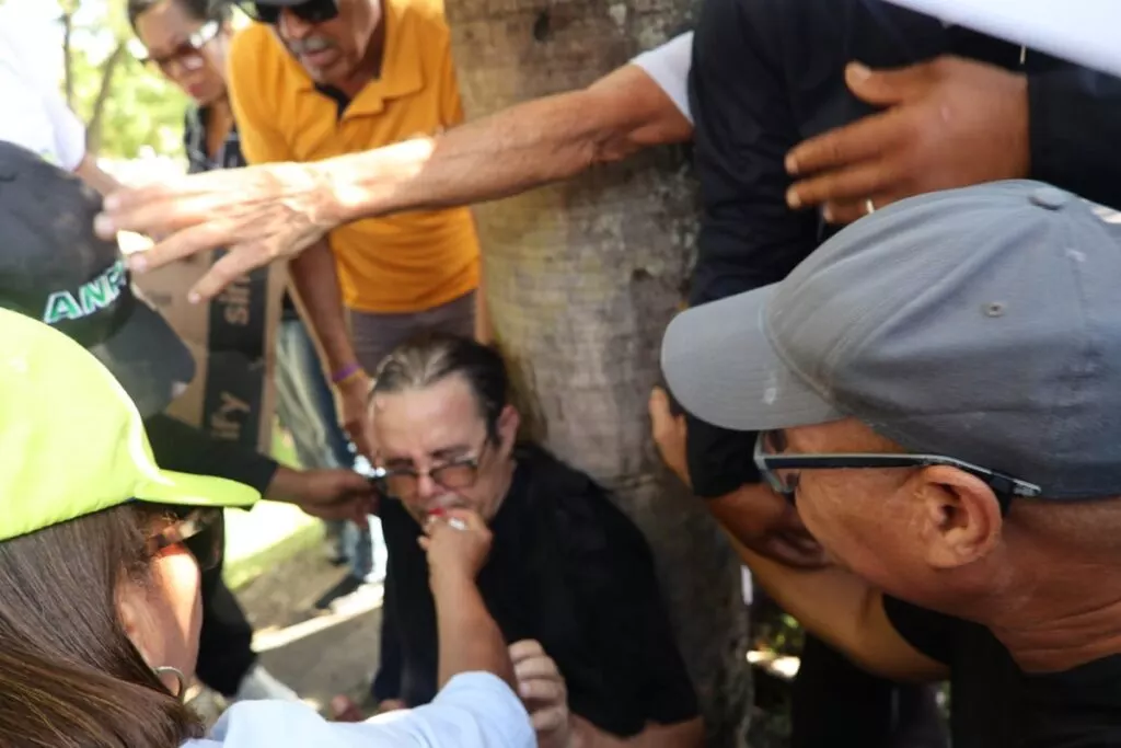 Tras el forcejeo, el presidente de la ANPA, Víctor Hugo (Tito) Hernández, fue visto sentado en el suelo y asistido por compañeros.