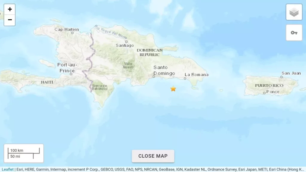 El temblor se registró a las 8:40 de la mañana con epicentro a 36 kilómetros al sur de San Pedro de Macorís, con una profundidad de 22 kilómetros.