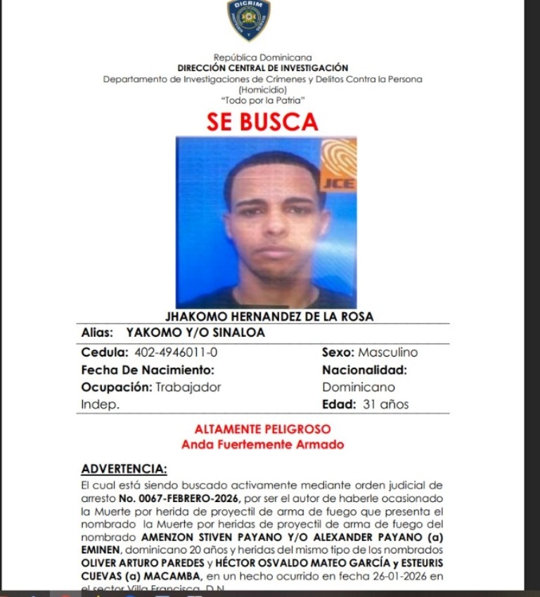 La Policía informó además que Jhakomo figura como prófugo de la justicia por un caso previo de homicidio, por lo que se activó su localización y se le exhortó a entregarse por la vía correspondiente.
