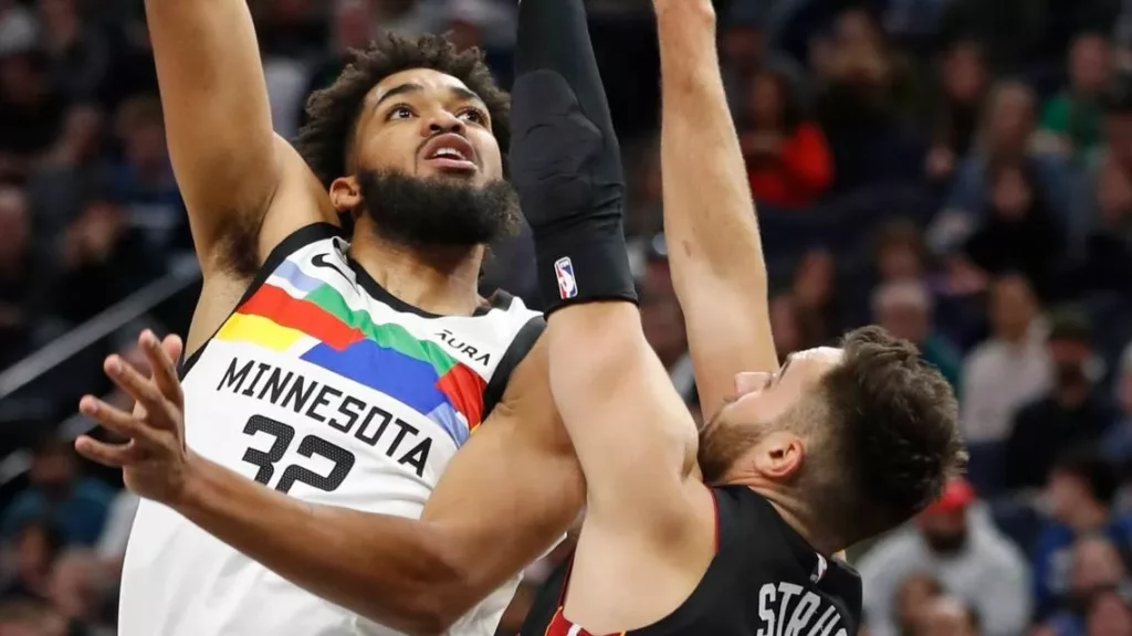 El dominicano Karl-Anthony Towns encestó 25 puntos con ocho rebotes y nueve asistencias en la victoria de anoche de Minnesota Timberwolves 105-101 sobre Miami Heat.