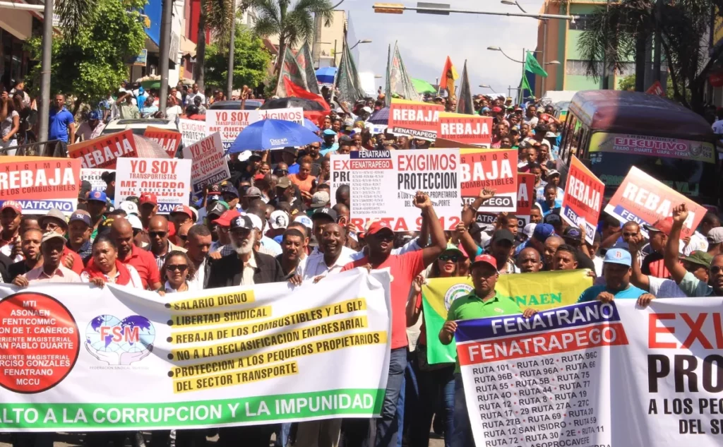 Durante la manifestación, que partió desde el parque Enriquillo hasta el parque Independencia, los participantes vociferaron consignas y portaban pancartas reclamando, además, la libertad sindical y el envío a la Justicia de los implicados en el caso Odebrecht.