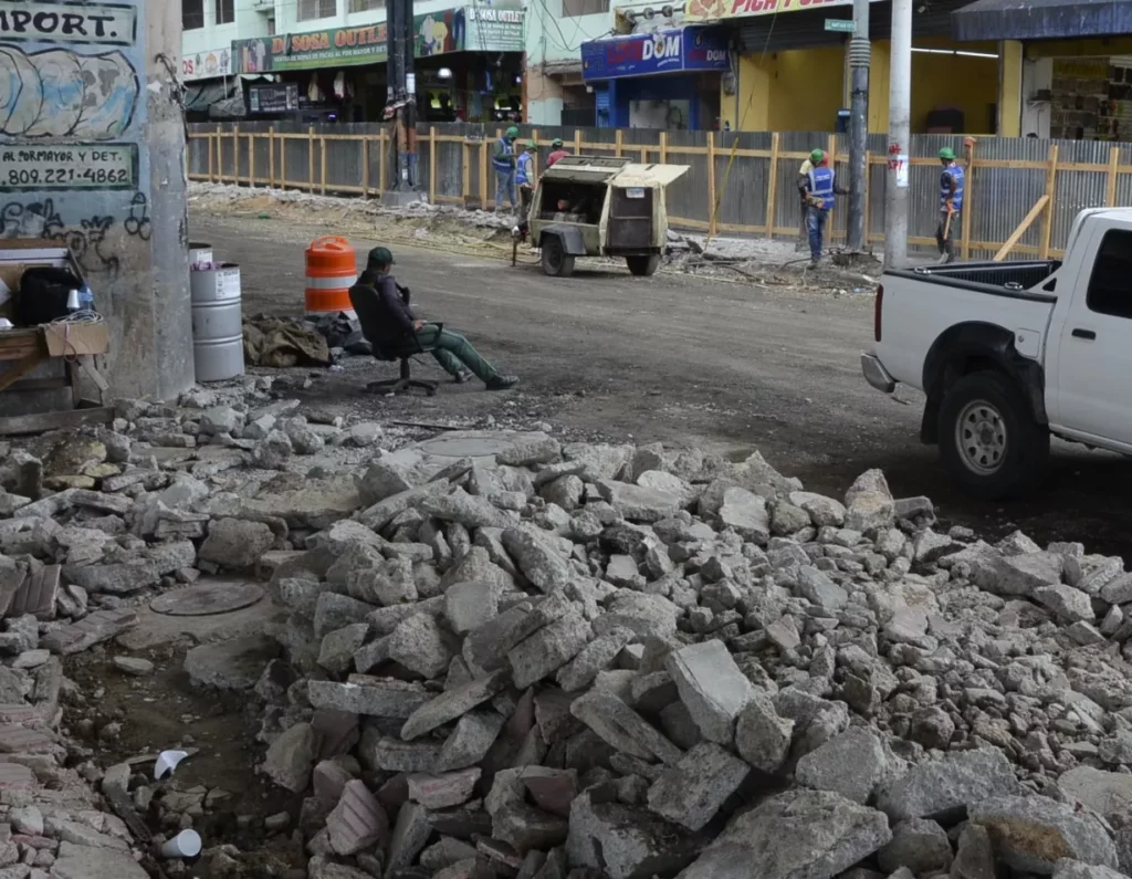 Brigadas contratistas de la Fundación Emprende y Transforma, que lidera el ministro de Turismo y ex alcalde David Collado, trabajan en levantamiento de pavimento y concreto para dar paso a los cubículos que en principio impactarán pusitivamente a unos 700 buhoneros.