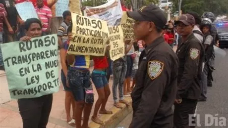 Santo Domingo.-A ritmo de tambores y levantando pancartas, decenas de mujeres esposas de choferes del transporte público protestaron ayer frente al Palacio Nacional en demanda de que el Gobierno las tome en cuenta para cubrir las rutas alimentadoras del Metro de Santo Domingo. Rudanny Espinal, vocera del Grupo de Mujeres Transportistas y Comunitarias, dijo que más de dos mil familias quedarían sin trabajo tras ser desplazadas de las rutas que alimentan al Metro.