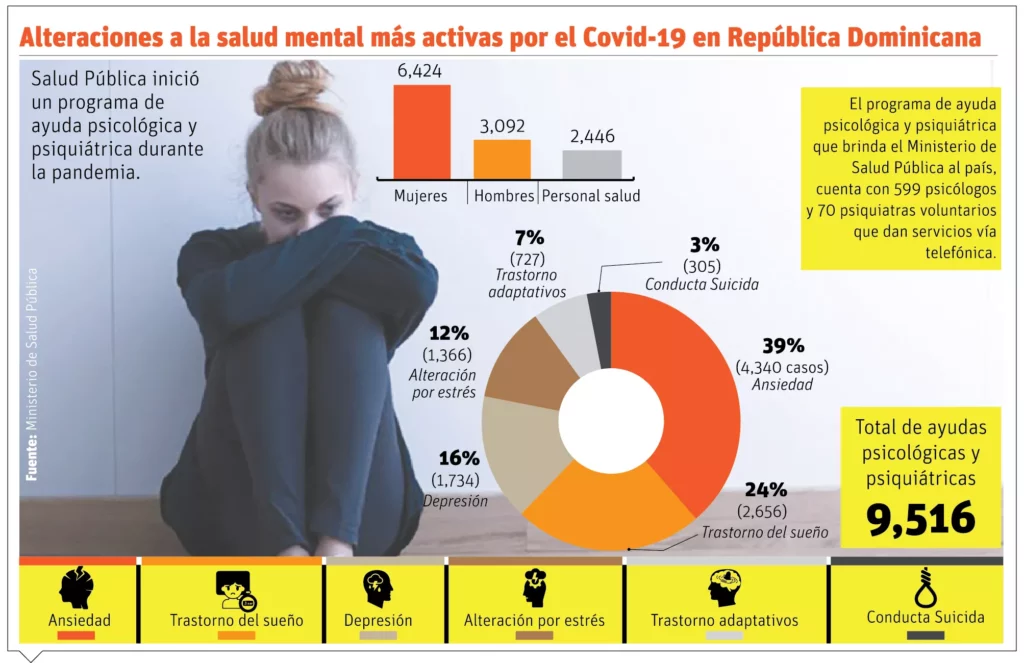 Para el psicólogo De la Rosa, sin lugar a dudas la incidencia de los trastornos mentales aumentará significativamente este año, fruto del impacto mental y emocional que está generando la epidemia del virus en el país.