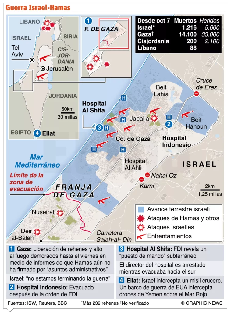 El acuerdo, logrado con la mediación de Catar, Egipto y Estados Unidos tras una jornada maratoniana de negociaciones en Doha, contempla que la tregua se pueda extender hasta un máximo de diez días, lo que permitirá que Hamás entregue a 150 secuestrados de entre los alrededor de 240 que mantiene cautivos; e Israel libere a hasta 300 palestinos.