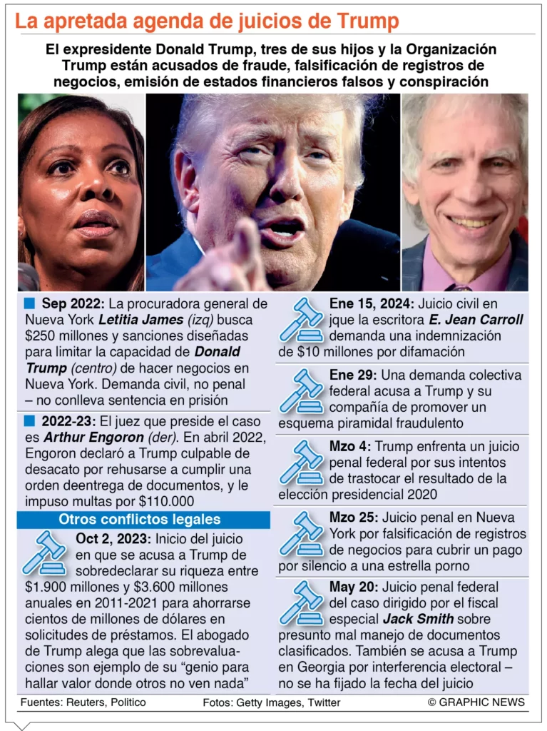 Mucho está en juego para el expresidente, especialmente su fuente de ingresos en Nueva York: el juez ha cancelado sus licencias de operación, los fiscales reclamaron ayer que se le prohíba hacer negocios y está por determinar la compensación por daños, que podría ascender a 250 millones de dólares.