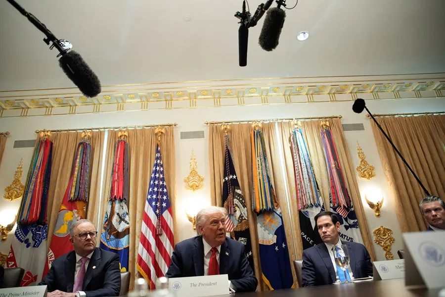«Tenemos paz en Oriente Medio por primera vez en la historia; llegamos a un acuerdo con Hamás por el que serán muy buenos, se portarán bien y serán amables. Y si no, vamos a ir y los vamos a erradicar», dijo el mandatario a la prensa durante un encuentro en la Casa Blanca con el primer ministro australiano, Anthony Albanese.