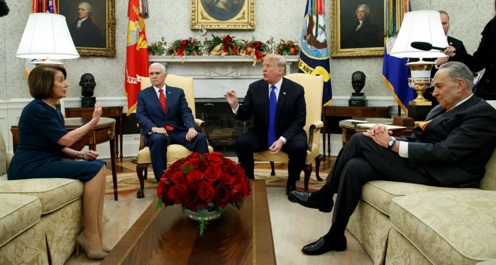 La reunión en la Oficina Oval entre Trump, el vicepresidente Mike Pence y los demócratas comenzó cortésmente, cuando Trump señaló el avance en la ley de justicia criminal en el Senado. Pero la sesión rápidamente se acaloró cuando prometió su muro a lo largo de la frontera entre México y Estados Unidos.