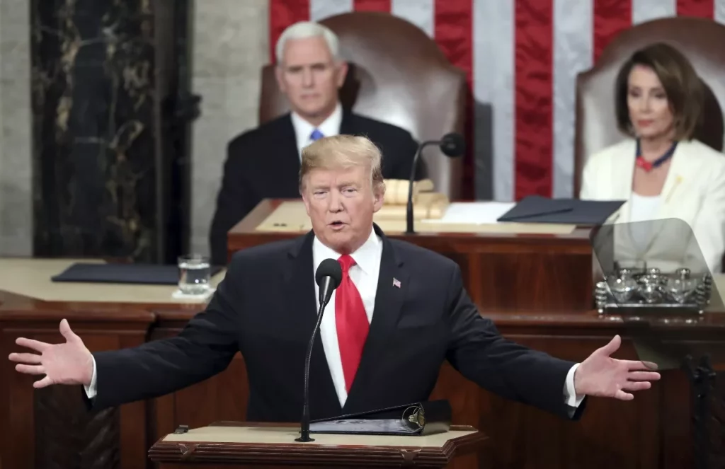 Por primera vez, desde que asumió su mandato, Trump tuvo a sus espaldas a un líder de la oposición: la presidenta de la Cámara Baja de flamante mayoría demócrata, Nancy Pelosi.