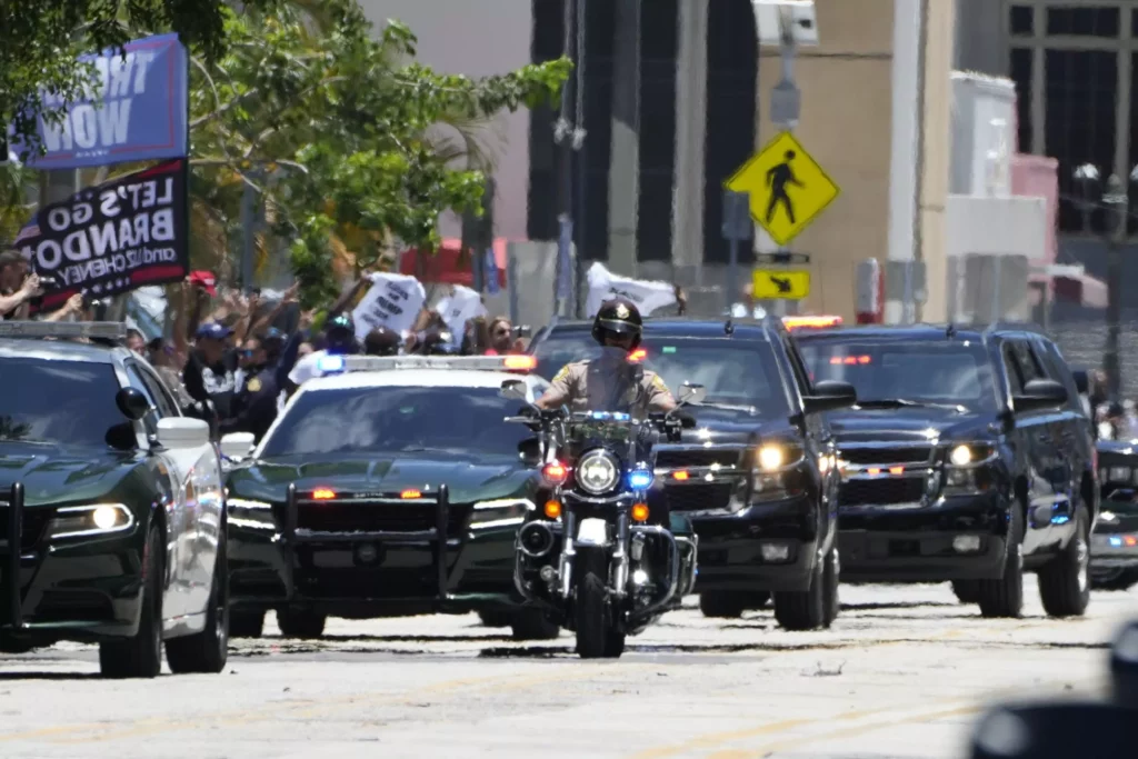 Tal como mostraron las imágenes de las cadenas de televisión estadounidenses, sobre las 13.30 hora local (17.30 GMT) una caravana de vehículos que transportaba a Trump abandonó el Trump National Doral Miami, hotel donde el expresidente pasó la noche y en el que se concentraron grupos de seguidores.