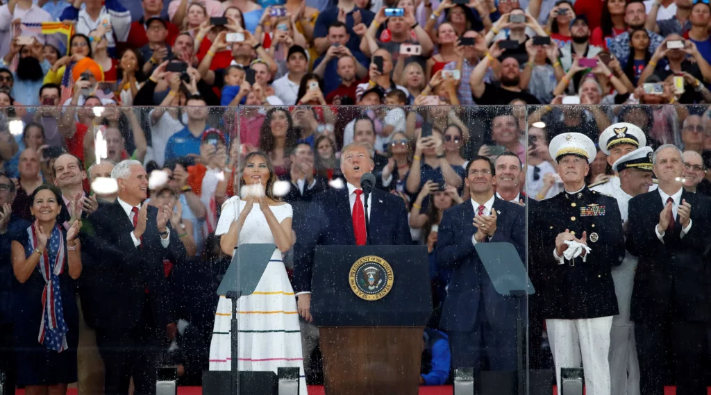 Washington.- Rodeado de tanques y con un discurso con pausas para presenciar el sobrevuelo de diferentes tipos de aviones militares, el presidente estadounidense, Donald Trump, presumió este jueves del potencial del Ejército de EE.UU. en la celebración del Día de la Independencia del país en Washington.
