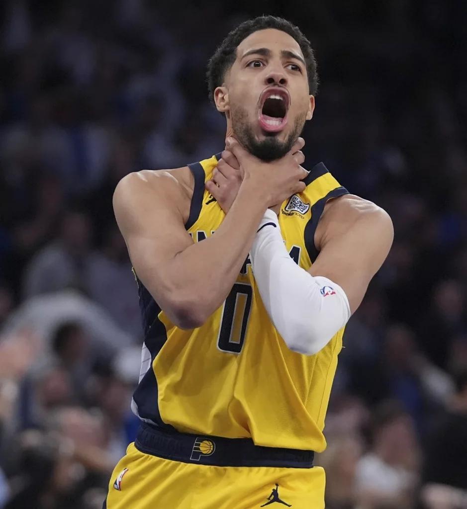 Tras El triunfo en tiempo extra sobre los Knicks, Tyrese se llevó las manos a la gargarta para imitar gestos del exjugador Reggie Miller.