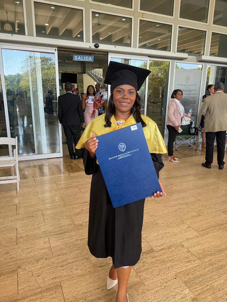 El mayor índice de la investidura, con 95.9 puntos y honores Summa Cum Laude, correspondió a la licenciada en Administración de Empresas Megan Paola Rosario Peralta, quien pronunció las palabras de agradecimiento en representación de la promoción.