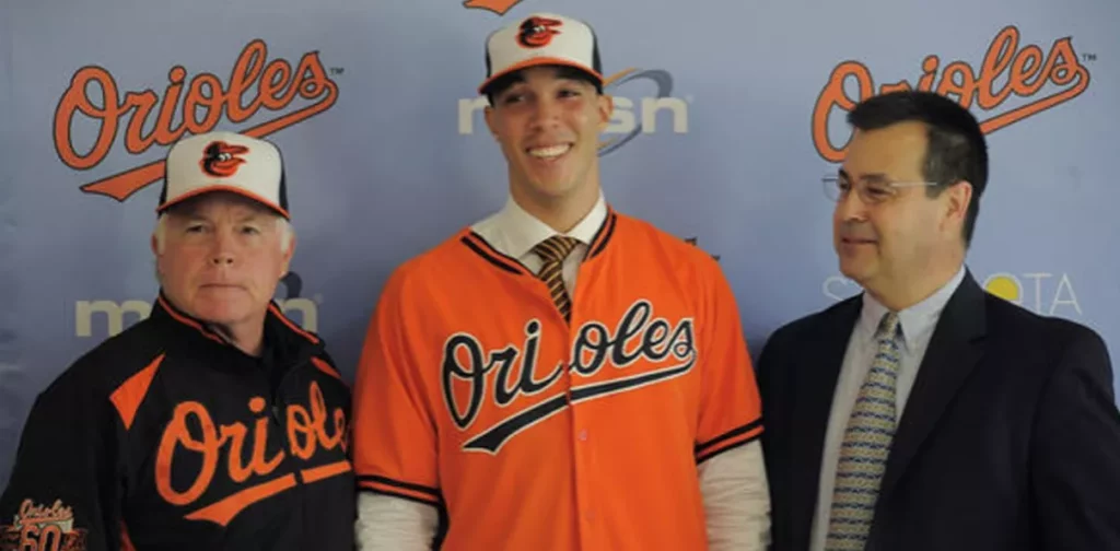 Jiménez llevaba un traje con corbata negra y rayas naranja y habló sobre su meta de ayudar a los Orioles hasta lograr un título de serie mundial. “Sé que se tardó mucho para que me traigan aquí”, dijo Jiménez.