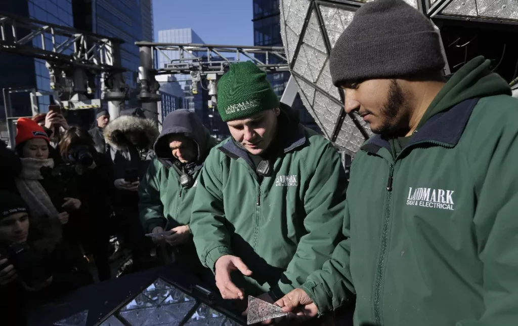 La famosa esfera, protagonista de la velada, de más de cinco toneladas y de más de tres metros de diámetro, que cada año viejo desciende al filo de la medianoche para dar la bienvenida al nuevo año, recibió hoy sus toques finales para su gran día.