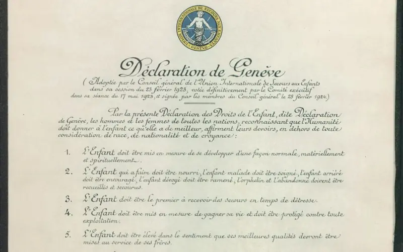 El documento fue adoptado en 1924 por la Sociedad de Naciones; 65 años después, la ONU formalizó la Convención sobre los Derechos del Niño.