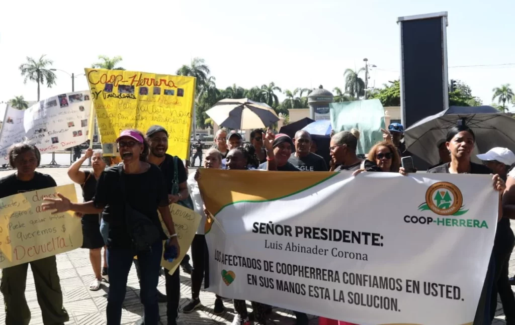 Santo Domingo, RD. – Rostros cargados de frustración, desesperación y enojo, así lucían, junto a sus pancartas, los socios de Coopherrera a las afueras del Palacio Nacional.