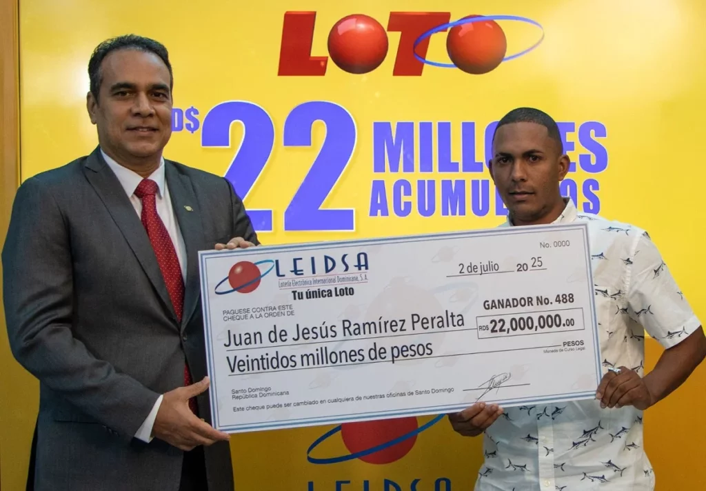 SANTIAGO. – La Lotería Electrónica Internacional Dominicana, S.A. (LEIDSA) entregó un cheque por 22 millones de pesos a Juan de Jesús Ramírez Peralta, quien se convirtió en el millonario número 488 que la empresa ha creado a través de su sorteo Loto.
