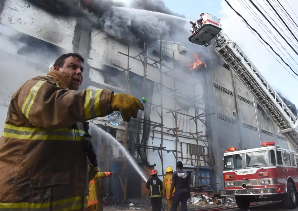 SANTO DOMINGO.-El intenso incendio que redujo a cenizas ayer gran parte del almacén hermanos Jerez, en el kilómetro 8 y medio de la carretera Sánchez, puso al desnudo factores importantes como la falta de agua, las precariedades de los cuerpos de bomberos y lo difícil que se les hace trabajar en muchos lugares.
